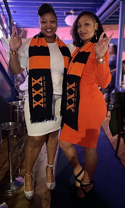 Black shirt with orange writing. #ChiTribe White lettering underneath, Chi Chi Chi Sorority Inc.